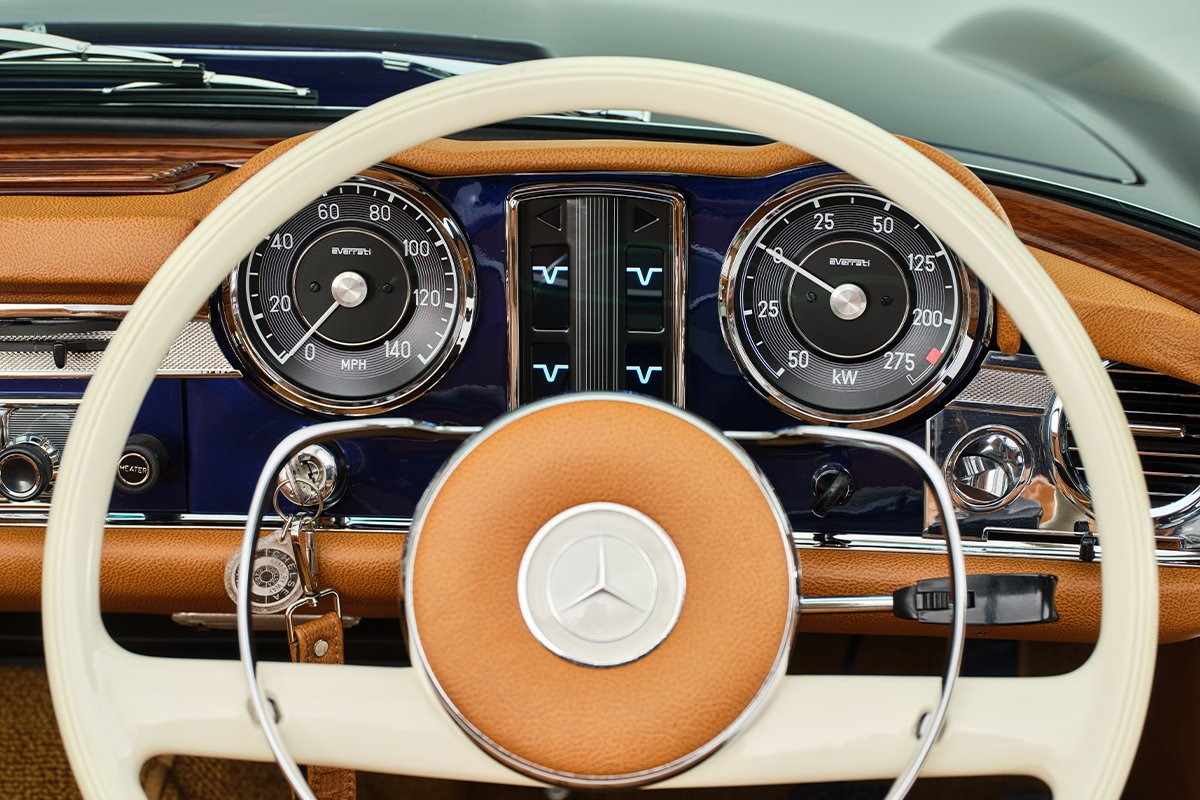 Discover the timeless elegance of the Mercedes-Benz W113 SL ‘Pagoda’, meticulously redefined by Everrati with a state-of-the-art electric powertrain. Seamlessly blending heritage with cutting-edge technology, this iconic car offers an exhilarating, sustainable driving experience. With whisper-quiet performance and zero emissions, the electrified Pagoda exemplifies the perfect union of classic luxury and modern innovation.